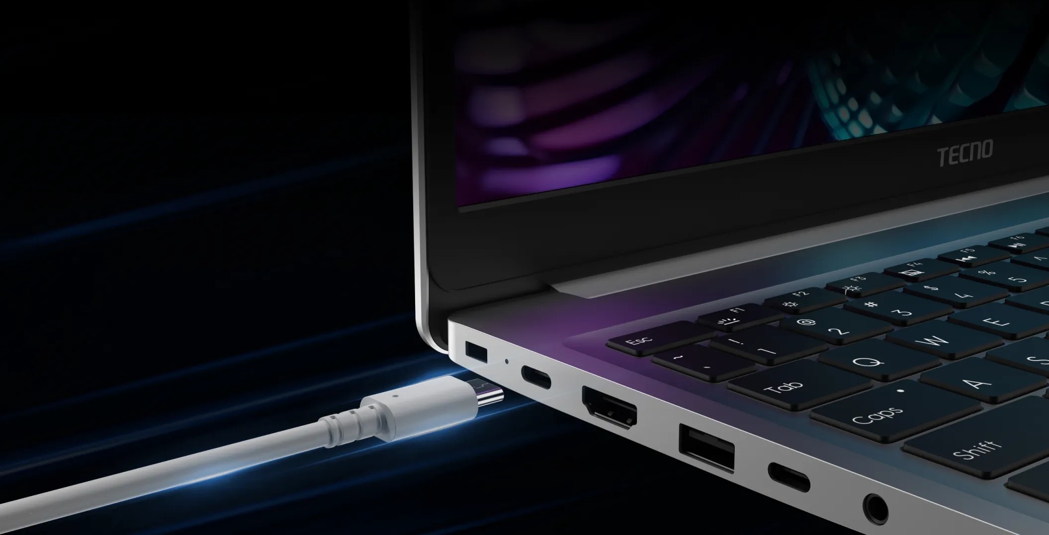Tecno Megabook K15S предлагает аккумулятор, которого хватает на продолжительное время. Поддержка быстрой зарядки через USB-C позволяет восполнить заряд в короткие сроки, что удобно при активной работе в пути.