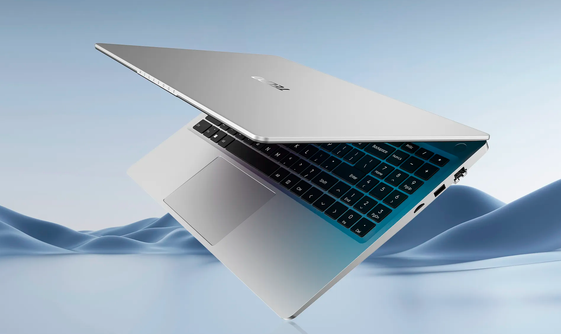 Tecno Megabook K16SFA выполнен в сером алюминиевом корпусе и выглядит сдержанно, аккуратно и современно. Ноутбук хорошо подходит для работы, учебы и повседневного использования, а благодаря классическому форм-фактору остается универсальным решением на каждый день. Полноразмерная клавиатура с цифровым блоком делает модель особенно удобной для набора текста, работы с таблицами и документами.