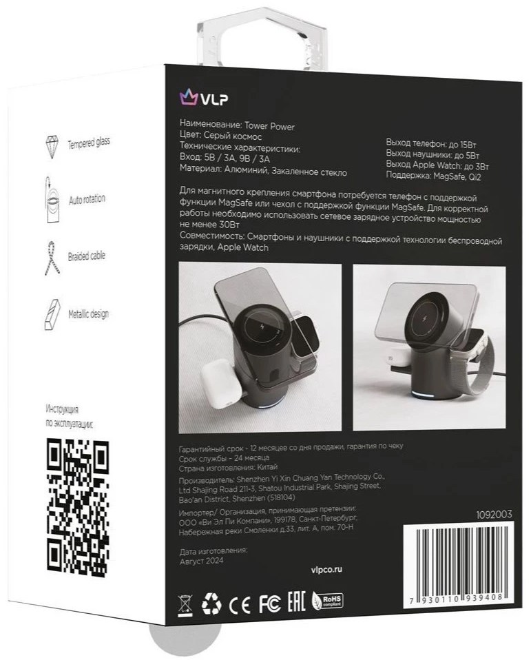 | Комплектация | документация, зарядная станция, кабель USB-C |