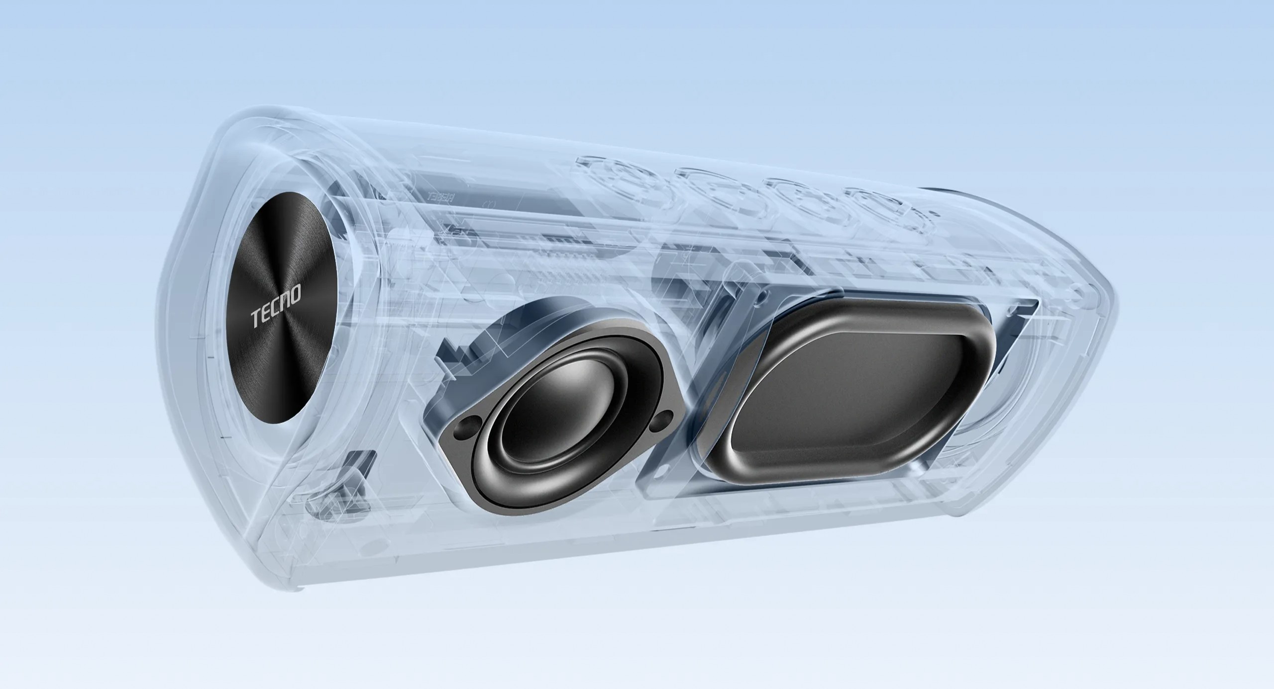 Несмотря на свои компактные размеры, Tecno S5 звучит так, будто перед тобой полноценная акустика. Три динамика суммарной мощностью 30 Вт создают объёмное Hi-Fi звучание, где низы ощущаются телом, а высокие частоты остаются кристально чистыми. Музыка звучит живо и эмоционально, будто ты на концерте.