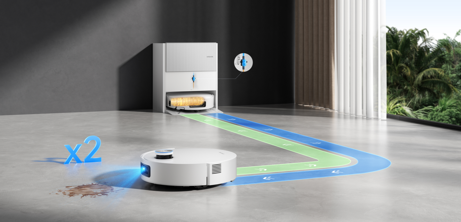 Устройство рассчитано на глубокую уборку: оно удаляет пыль, шерсть животных, крупные частицы и накопившийся мусор в углах. Значение в 30 000 Па позволяет справляться с загрязнениями на твёрдых полах и коврах. Чтобы улучшить качество уборки, робот сам увеличивает мощность на мягких покрытиях.