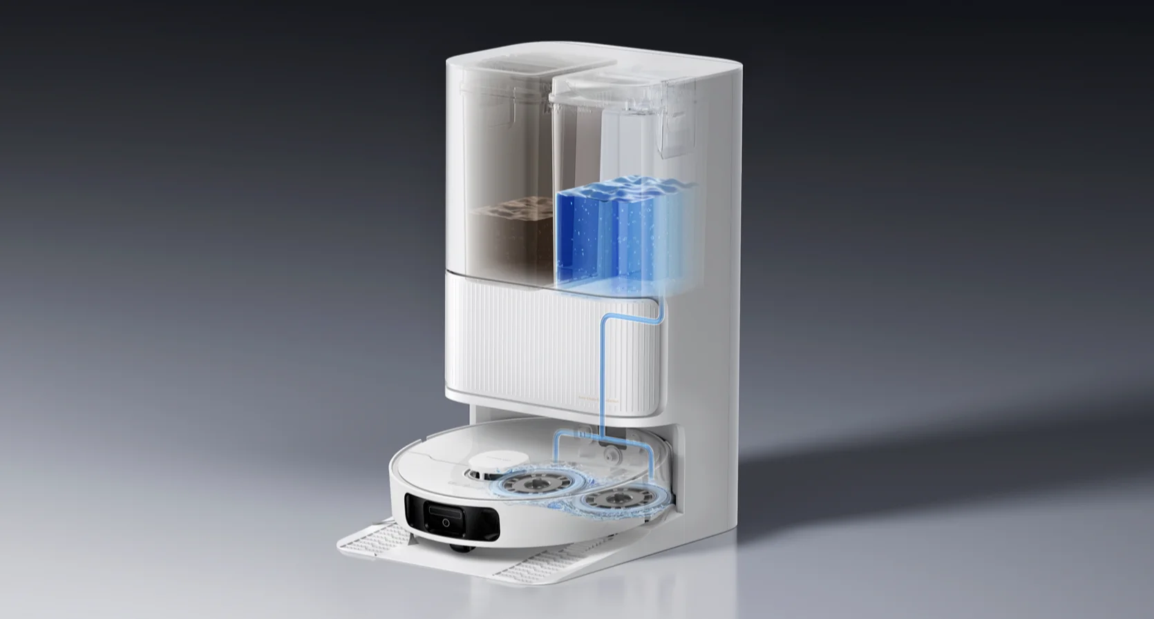 Благодаря док-станции PowerDock пылесос не требует постоянного обслуживания. Станция автоматически очищает швабры, сушит их, опорожняет пылесборник и следит за уровнем воды. Ёмкости на 4,5 литра для чистой воды и 4 литра для грязной, а также пылесборник на 3,2 литра обеспечивают до 100 дней автономной работы без участия пользователя.
