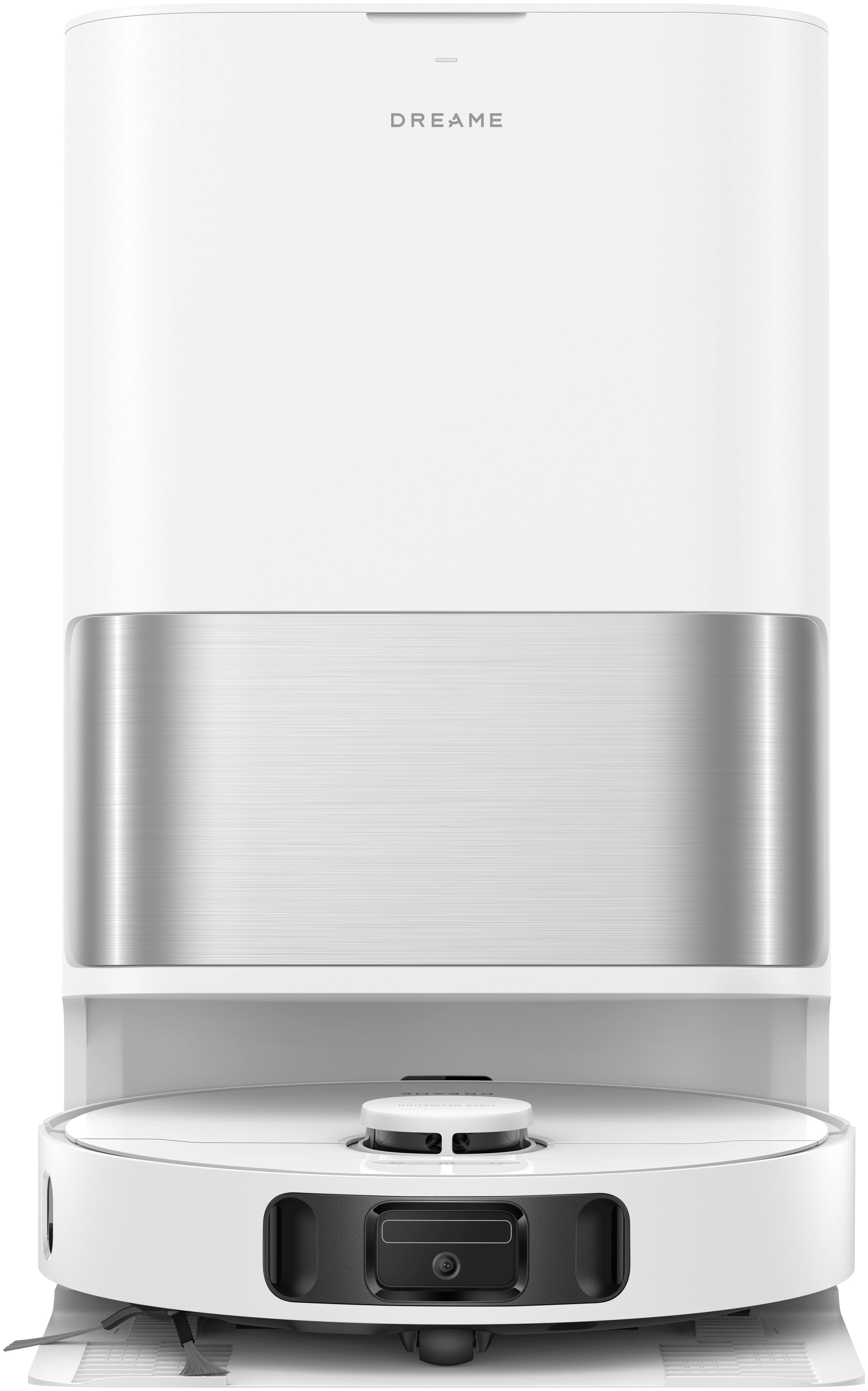 Dreame D30 Ultra выполнен в аккуратном корпусе белого цвета с серебристыми элементами. Высота 9,7 см позволяет роботу свободно заезжать под мебель и убирать труднодоступные зоны. Конструкция продумана для ежедневной эксплуатации, а боковые щётки улучшают сбор мусора вдоль стен и в углах.