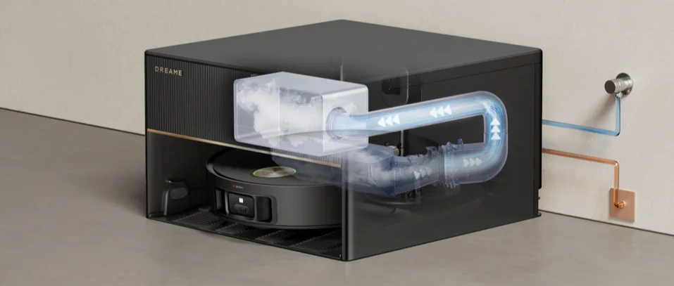 Система PowerDock позаботится обо всем: от автоматической заправки, слива и промывки до зарядки, благодаря чему вы сможете сосредоточиться на результатах, не беспокоясь об обслуживании. Наслаждайтесь интеллектуальной уборкой без хлопот. (Комплект для подключения к водопроводу приобретается отдельно)