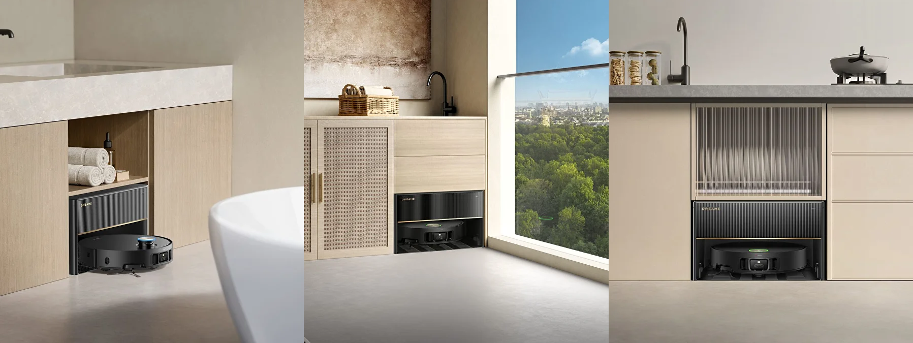 Различные варианты установки позволяют гармонично встроить базовую станцию в интерьер вашего дома. Вне зависимости от места установки будь то кухня — ванная комната или балкон — вы сможете наслаждаться уборкой без хлопот благодаря системам автоматической заправки и слива воды, которые разработаны, чтобы обеспечить максимальное удобство