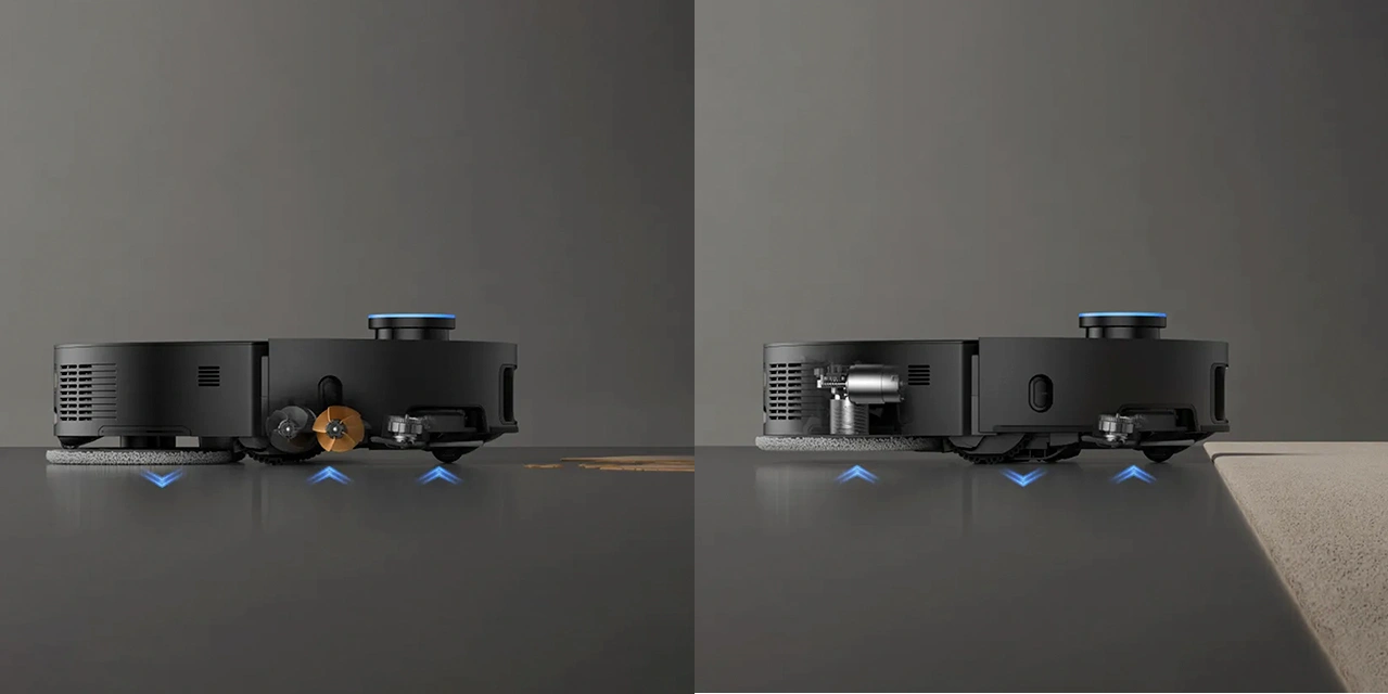 Для точной навигации без ненужного вращения в роботе-пылесосе X50 Master используется датчик с поддержкой кругового сканирования пространства, который позволяет создавать подробную карту без слепых зон. Система навигации VersaLift с интеллектуальными возможностями убирает датчик DToF, когда пылесос заезжает под низкую мебель.