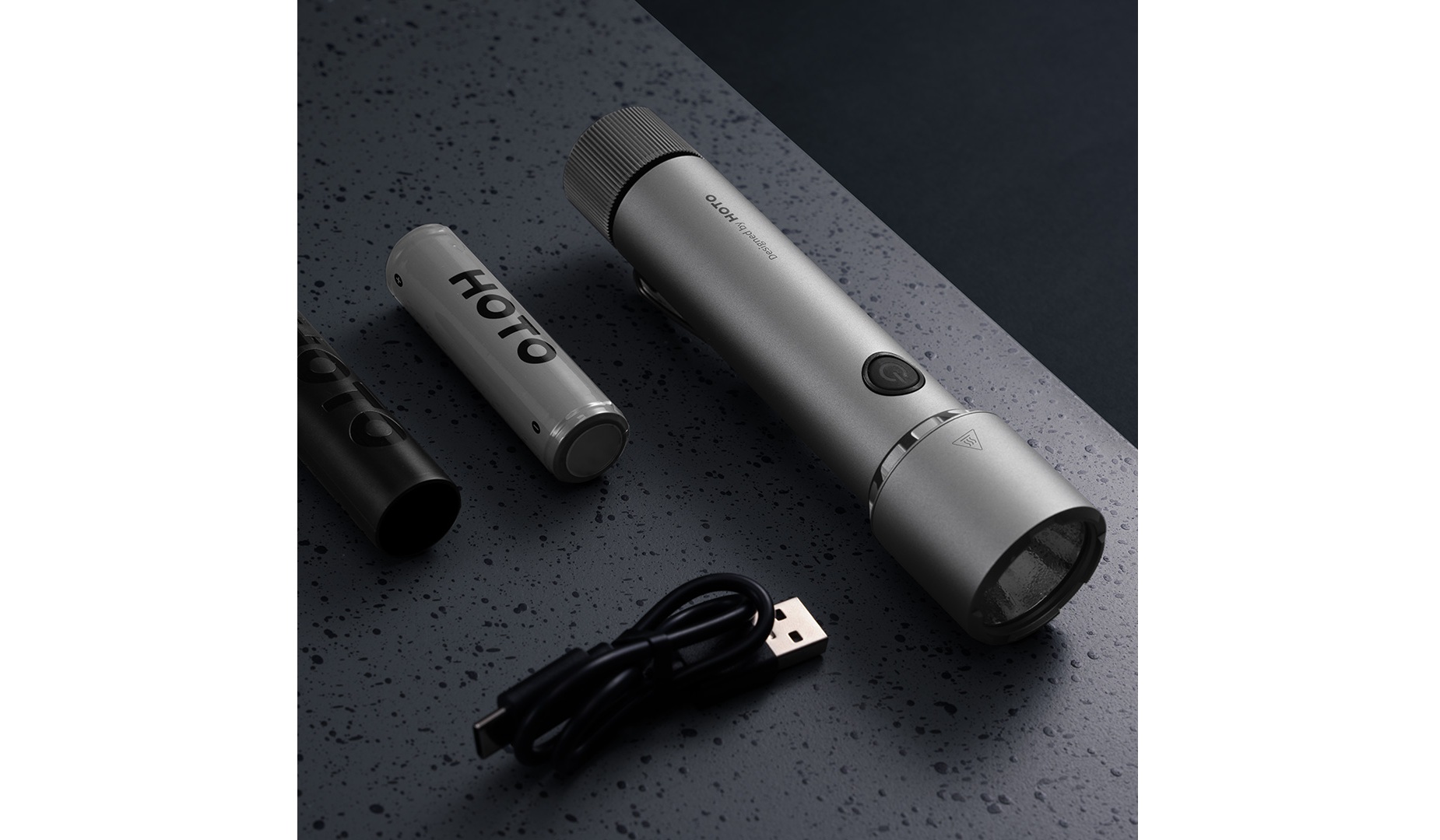 HOTO Flashlight Fit 2300 выполнен в прочном алюминиевом корпусе серебристого цвета с лаконичным и функциональным дизайном. Ударопрочная конструкция рассчитана на активное использование, а компактные габариты и вес 200 г позволяют удобно носить фонарь с собой — в рюкзаке, автомобиле или снаряжении.