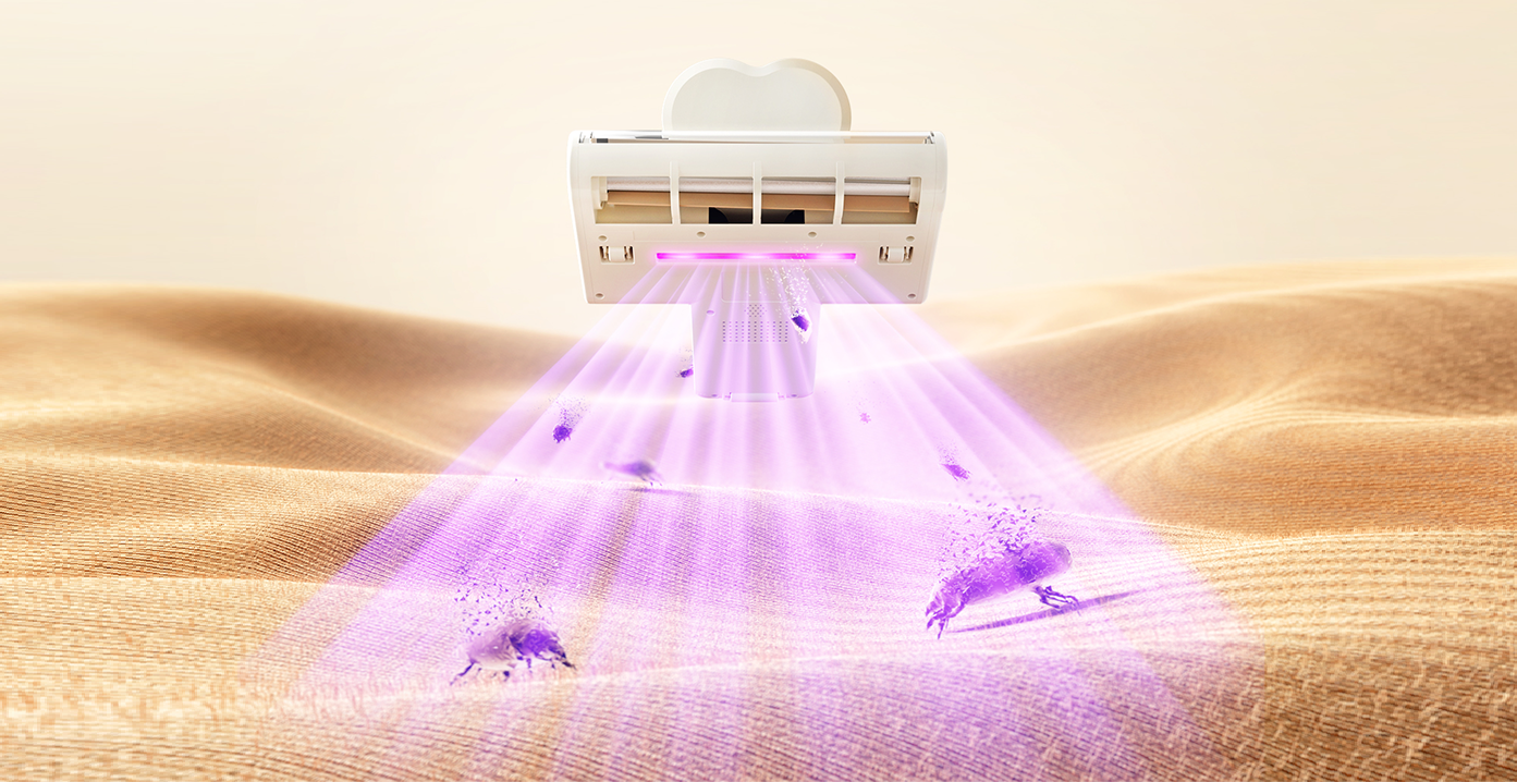 Основная задача модели — глубокая очистка мягких поверхностей. Пылесос оснащён функцией механического выбивания пыли, которая помогает поднять частицы с глубины ткани. УФ-лампа с длиной волны 270–280 нм воздействует на клещей и микроорганизмы, улучшая гигиеничность обработки. Дополнительно предусмотрена сушка горячим воздухом при температуре около +65 °C — это помогает устранить влажность и повысить эффективность очистки.