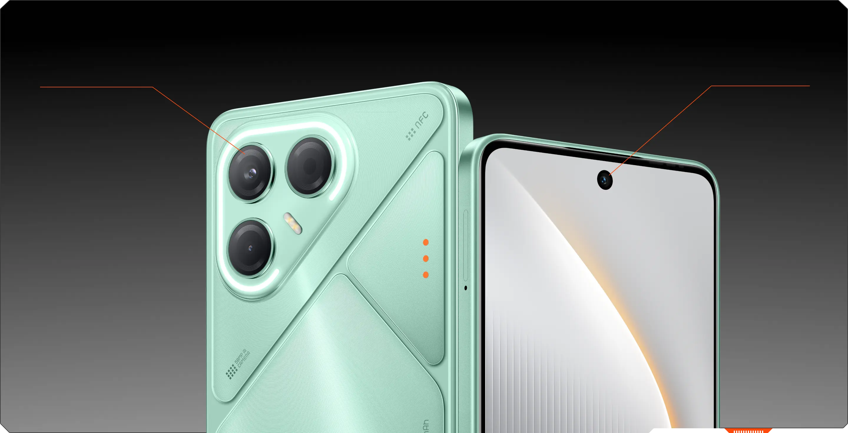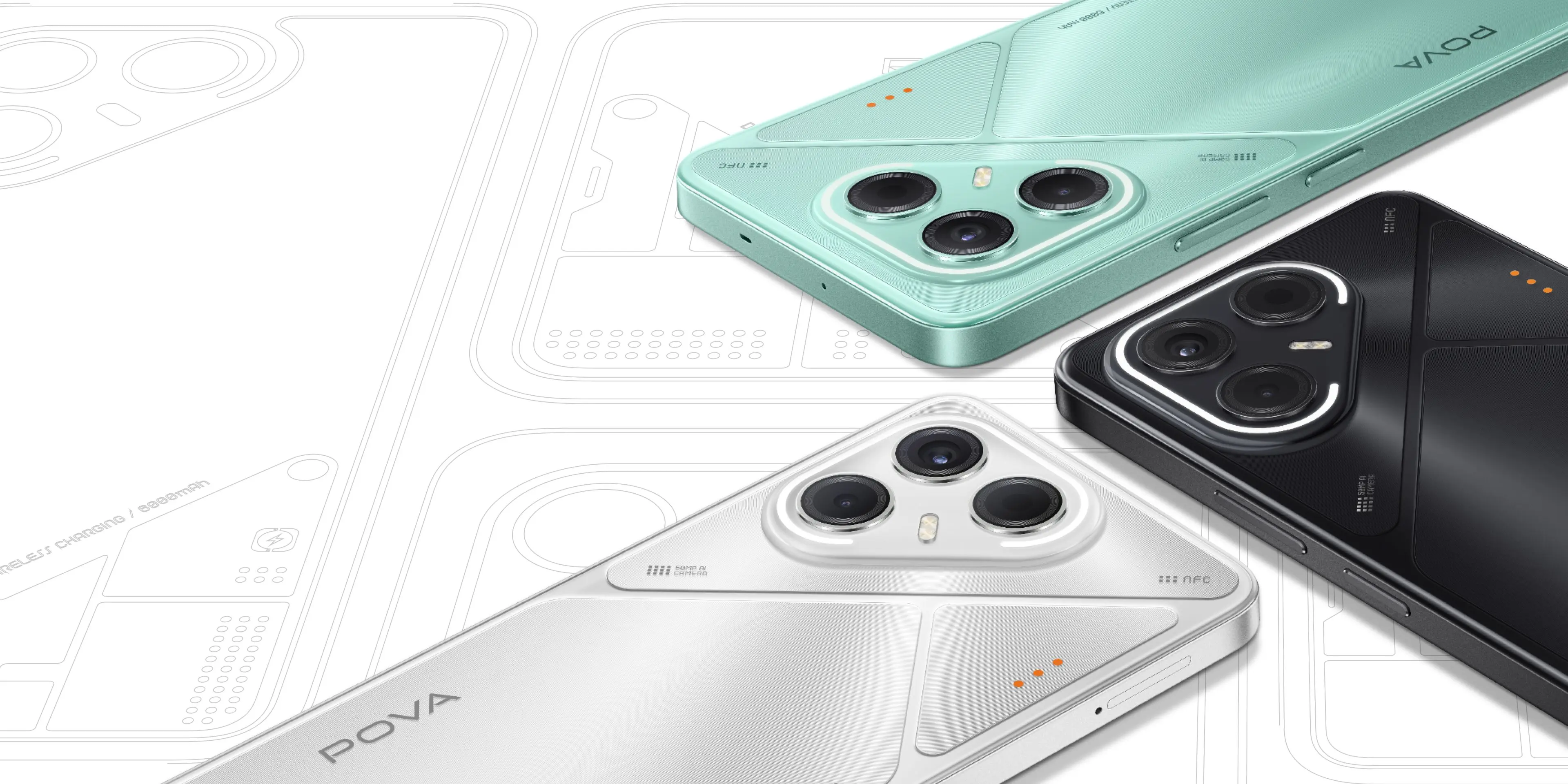 Tecno POVA 7 5G — смартфон, который сочетает в себе современный дизайн и продуманные игровые возможности. Он построен на базе процессора MediaTek Dimensity 7300 Ultimate (6 nm), снабжён 6,78-дюймовым IPS-экраном с разрешением Full HD+ и рекордной для своей категории частотой обновления 144 Гц. Смартфон доступен в трёх цветах: Geek Black, Magic Silver и Oasis Green. Задняя панель выделяется ободком из 104 светодиодов вокруг основного блока камер: он служит индикатором уведомлений и создаёт выразительный визуальный образ.