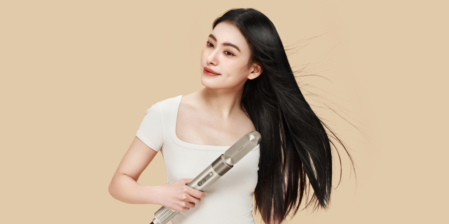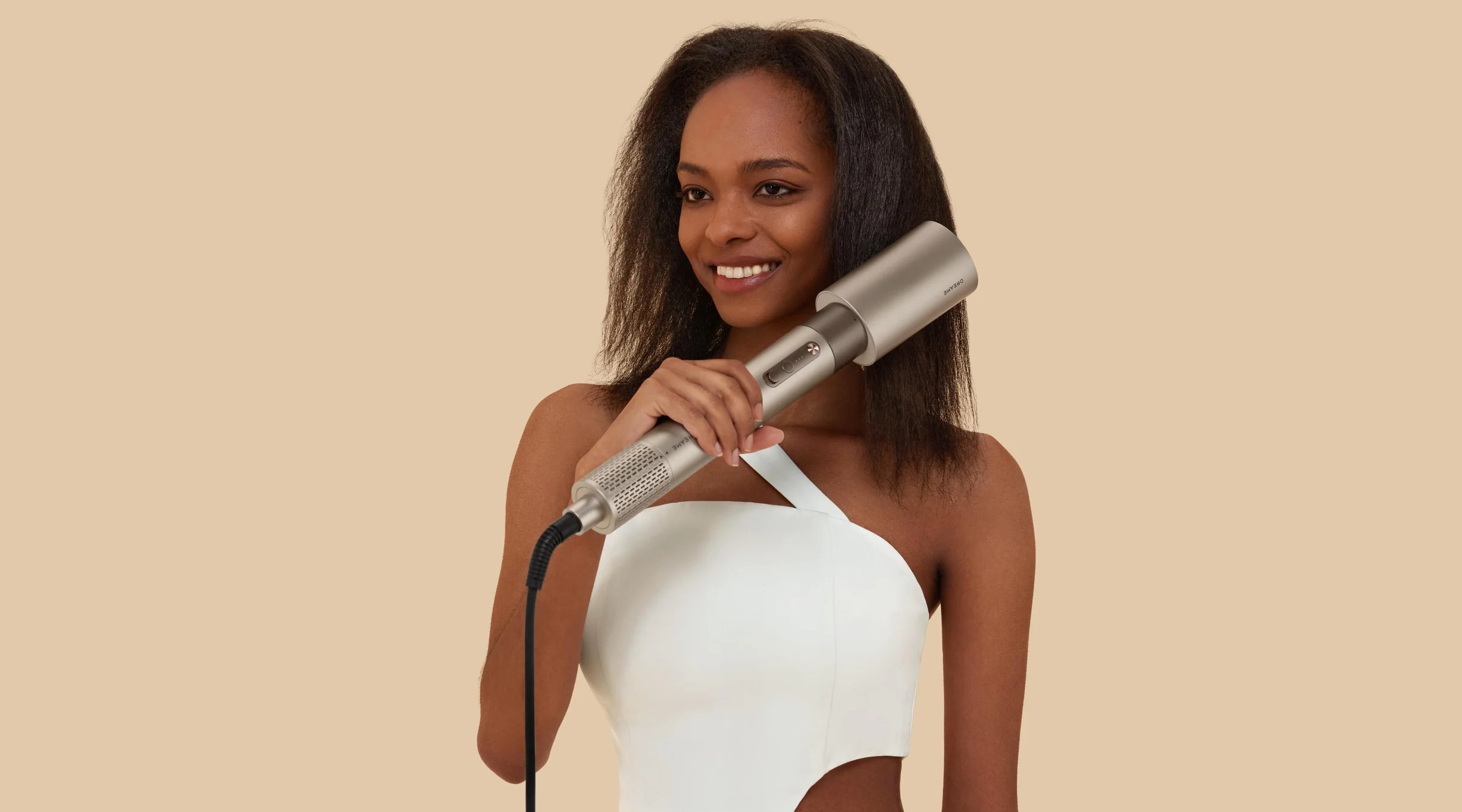 Фен-щетка Dreame при помощи специальной насадки для разглаживания волос без усилий возвращает волосам ровное и гладкое состояние.