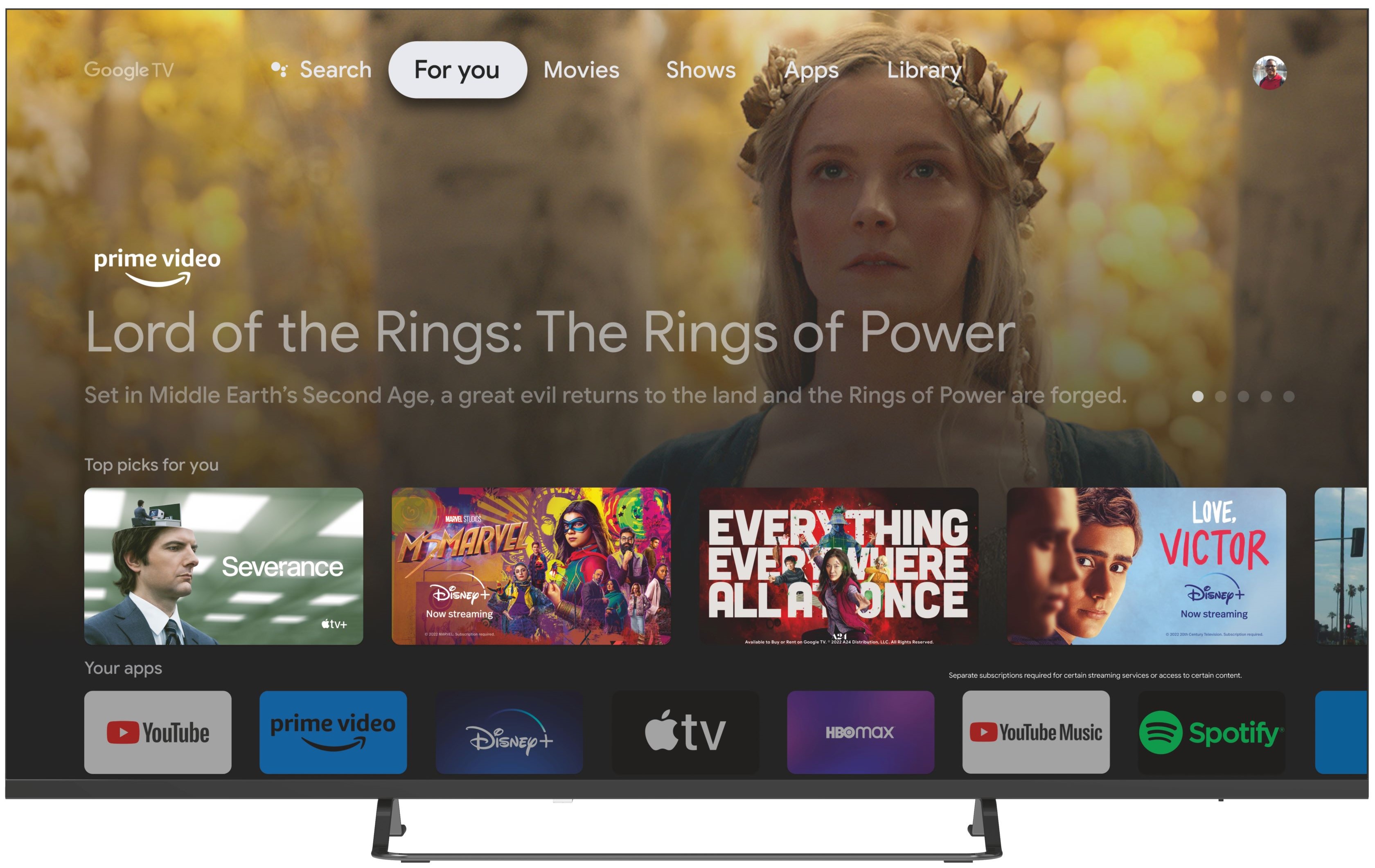 Телевизор работает на базе операционной системы Google TV, что предоставляет доступ к широкому выбору приложений, стриминговых сервисов и игр прямо из магазина Google Play. Управление устройством осуществляется с помощью удобного пульта.