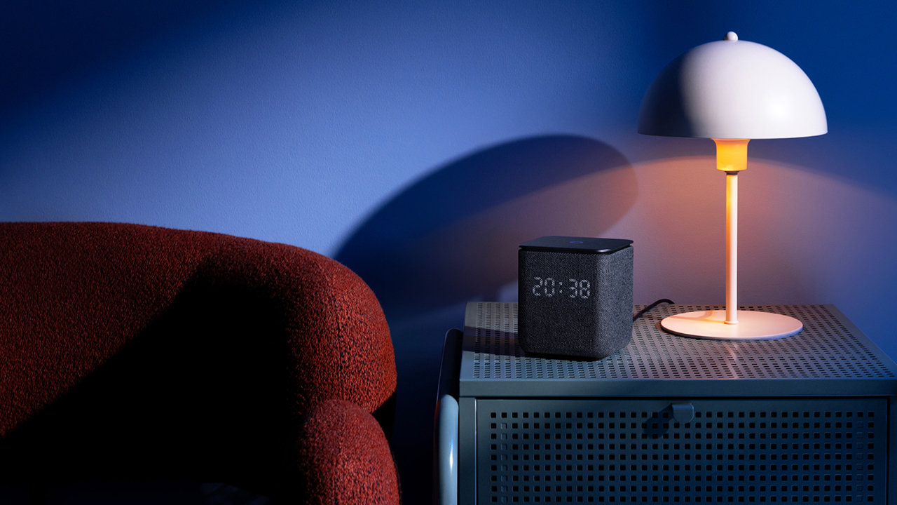 Приятный корпус с тканевой отделкой, доступный в разных расцветках текстильной части, не только придает колонке стильный внешний вид, но и создает приятные тактильные ощущения. Он также защищает динамики и слегка смягчает звук, а встроенный экран эффектно светится прямо на текстильной стороне.