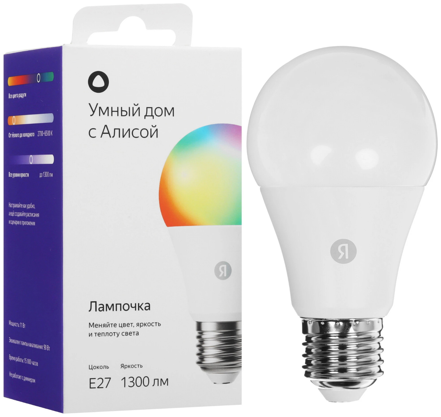 | Дополнительно | мощность 11 Вт, цветовая температура 2700-6500 К, световой поток до 1300 лм, цоколь Е27 |