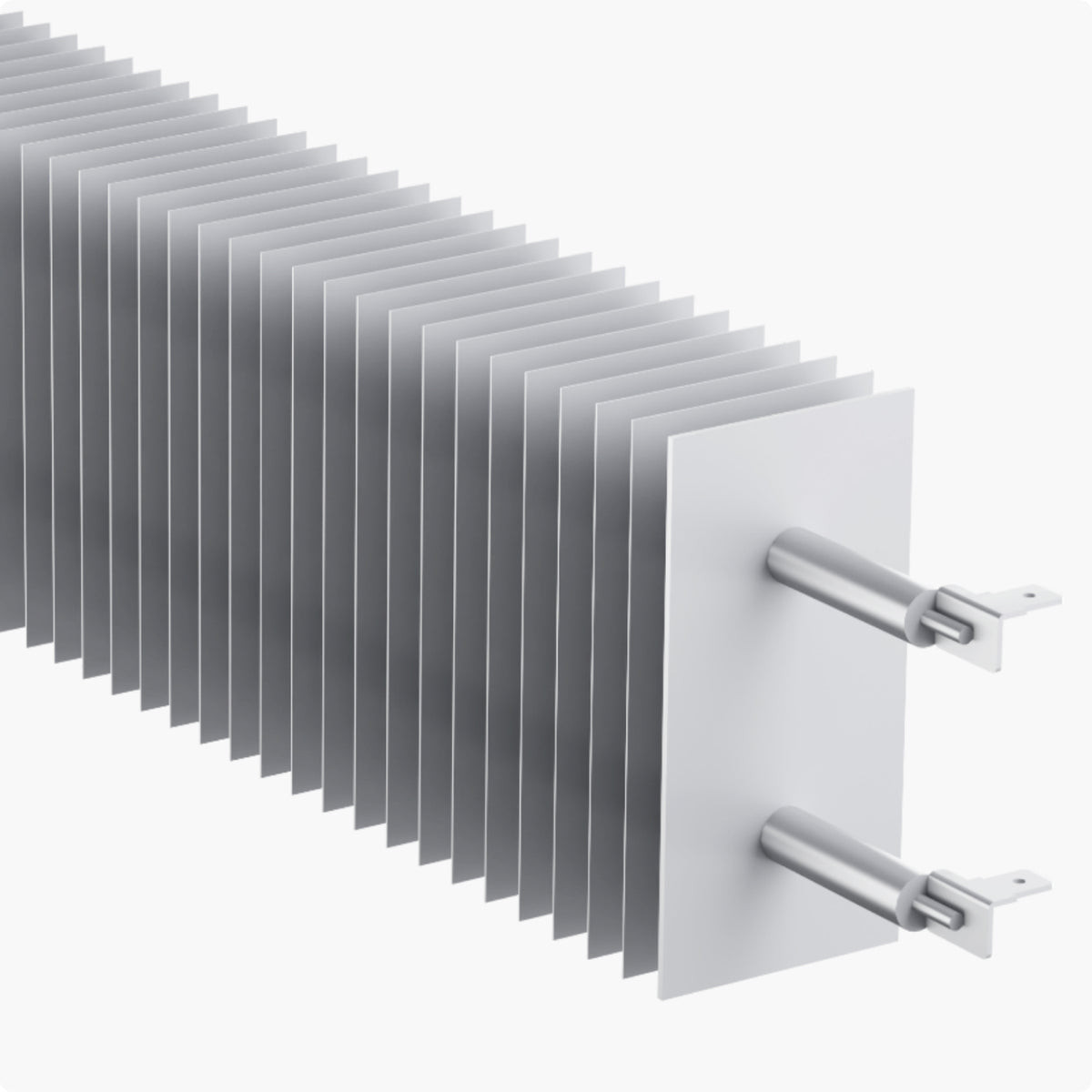 Эффективная конструкция с 72 алюминиевыми пластинами передает и рассеивает тепло через поверхность площадью 4 600 см², а ребристая структура создает более организованный поток воздуха. Благодаря высокой мощности 2200 Вт помещение прогревается еще быстрее.